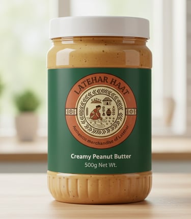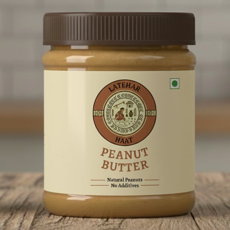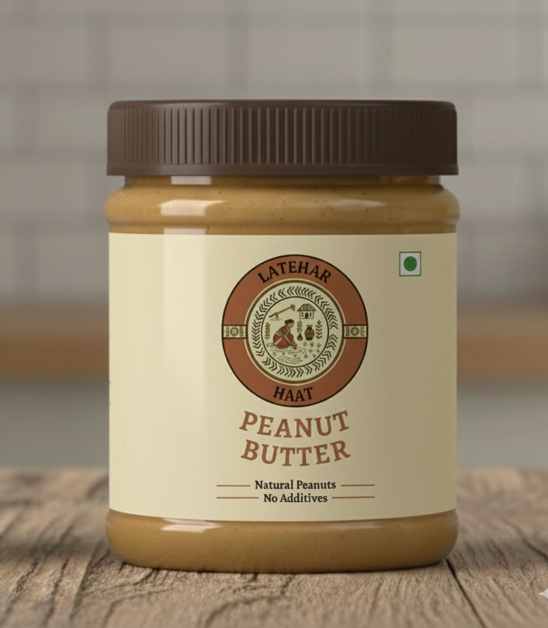 Latehar Haat Peanut Butter is made from high-quality peanuts grown naturally by tribal farmers in Latehar, Jharkhand. The peanuts are slow-roasted and ground in small batches to retain their natural flavor and nutrition. We don’t use hydrogenated oils, preservatives, or added sugar — just peanuts.